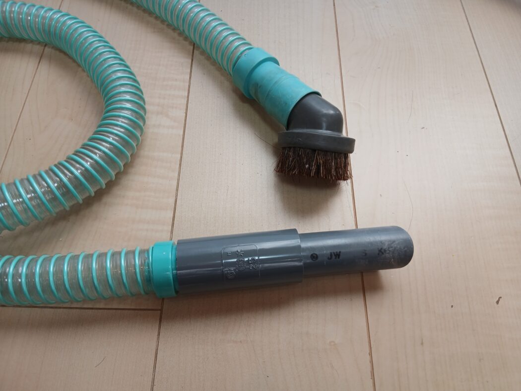 特にハイコーキのようなプロ用電動工具メーカーの掃除機は、吸込仕事率が高いため、これだけ長いホースを繋いでも吸引力が落ちにくいのが強みですね。