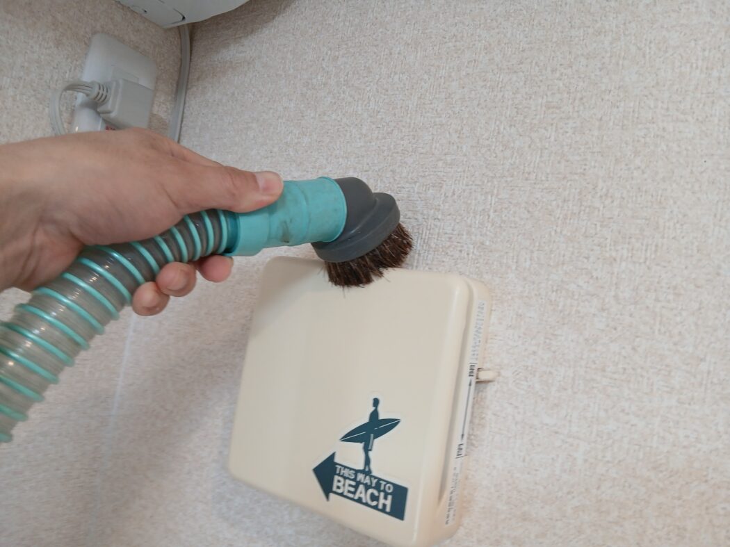 先端にはブラシノズルを装着。 これにより、ただ吸い込むだけでなく、溜まったホコリを「掃き出しながら吸う」ことが可能に。エアコンのフィルター掃除やサッシの溝など、細かい部分の汚れもしっかり掻き出してくれます。