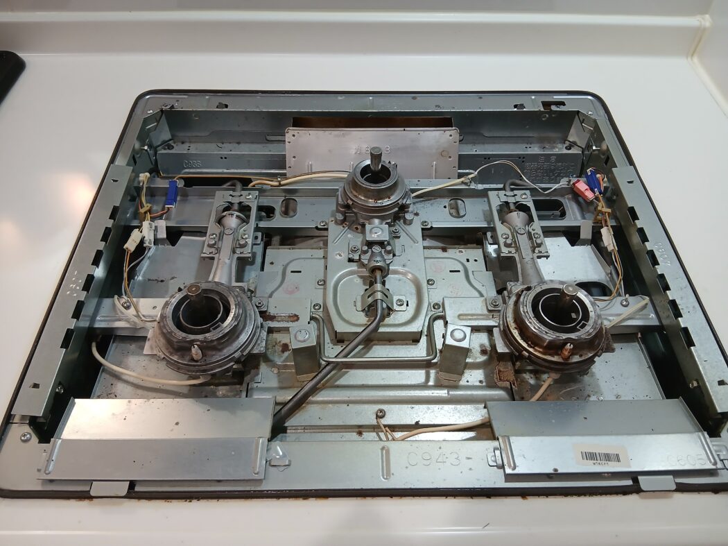 3口タイプで左右はまだ使えますが、中央部分のバーナーの不調です