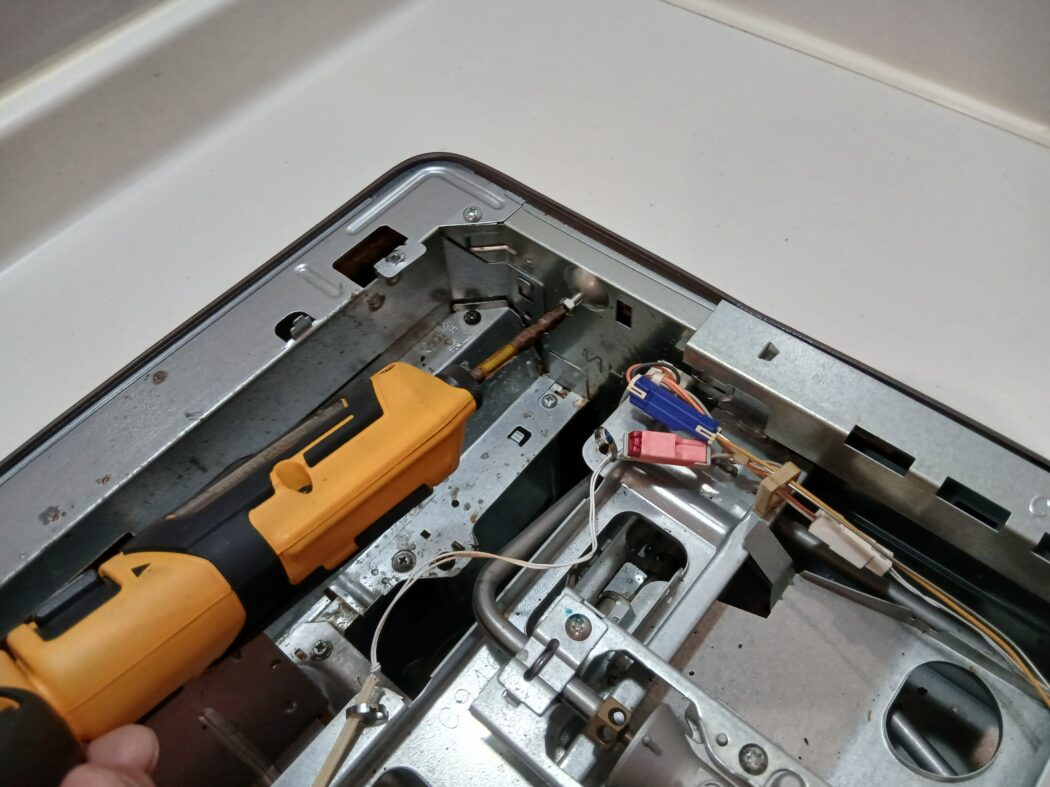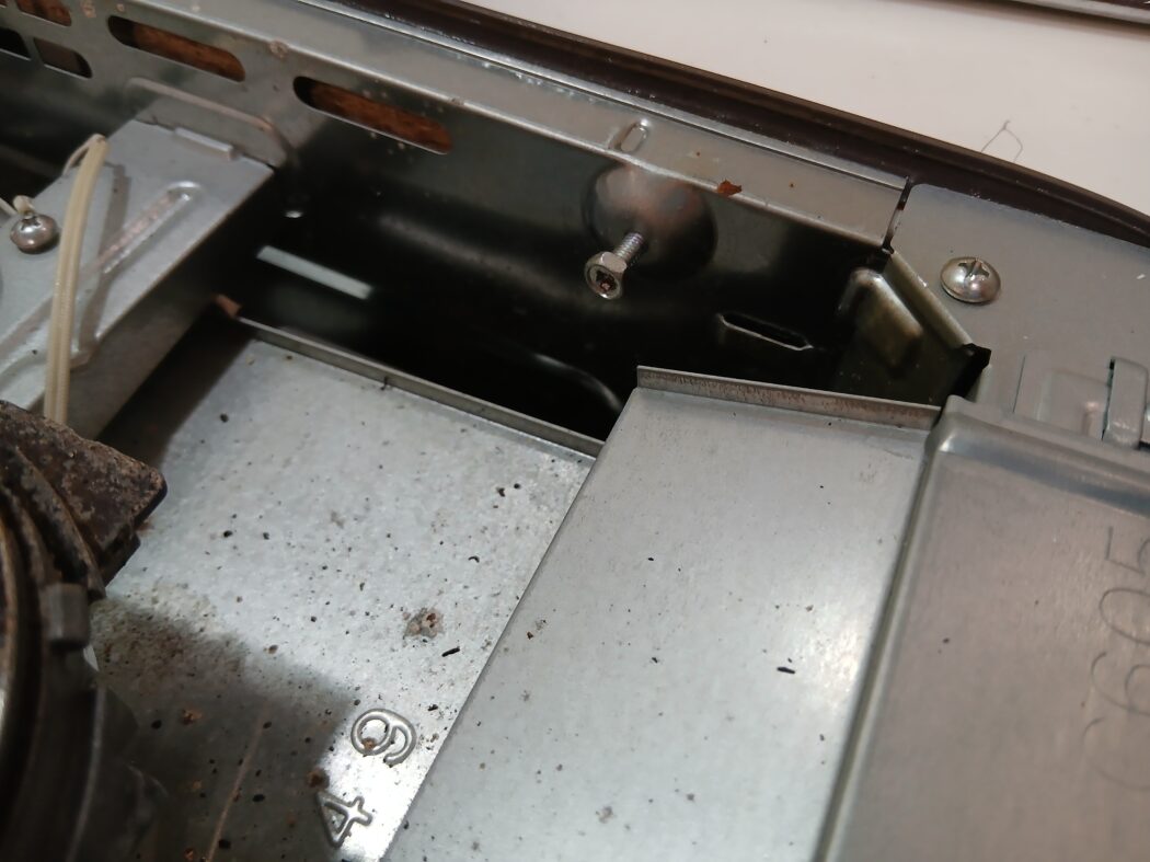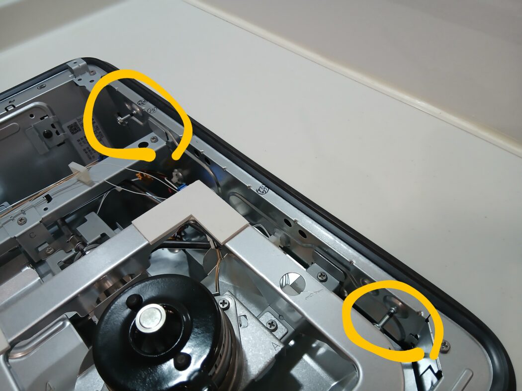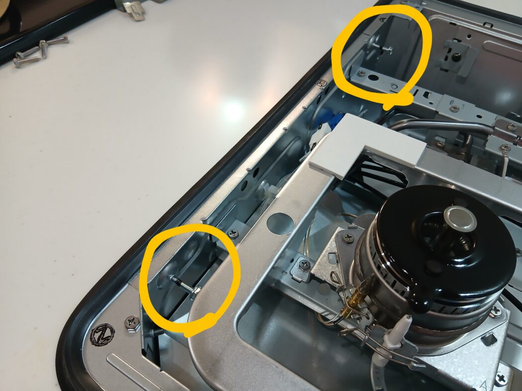 中身が見えたら左に2か所、右に2か所の計4か所に横向きに付いているネジがあるので全部緩めます🪛